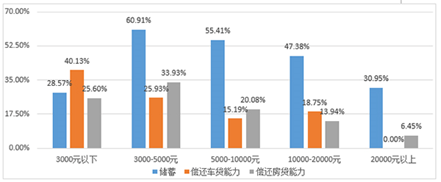 储蓄、偿还车贷、房贷能力下降(按收入分组)
