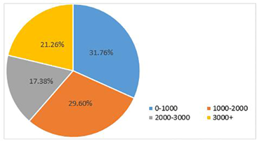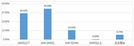 随着“停工不停学”政策的出台,除了学校,很多课后辅导机构也纷纷投向线上授课。在家中有未成年人的受访者中,44.18%的人表示疫情发生后孩子的课外辅导班由线下转为线上。上课方式的转变使得36.52%的家庭每月节约开支1000元以下,43.04%的家庭每月节约开支1000元到2000元,13.04%的家庭表示每月节约开支2000到5000元,而每月节约开支超过5000元的家庭占比为0.65%。