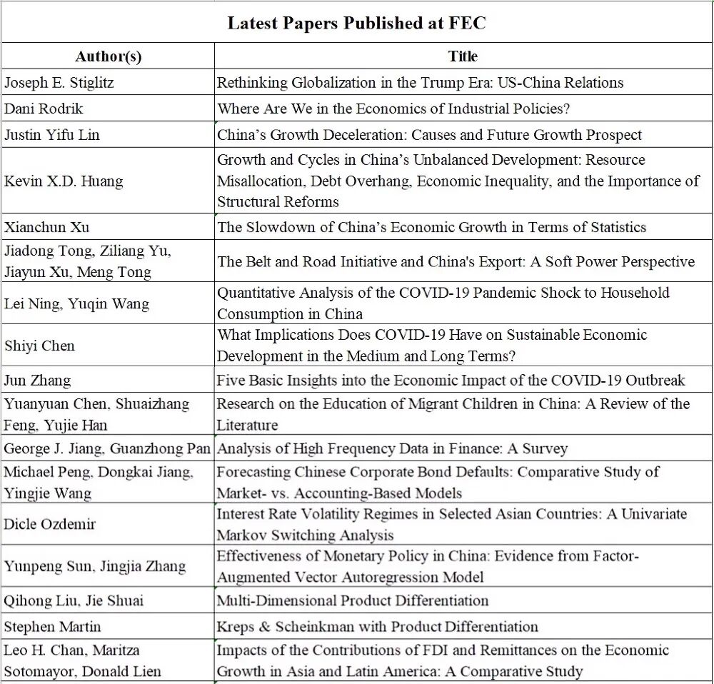 FEC刊发经济学各个方向的理论性、实证性论文,特别是与中国经济及其他新兴、发展中或转型经济相关的论文。发稿以原创论文为主,同时也涵盖观点论文、文献综述、书评等。