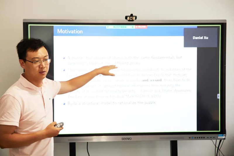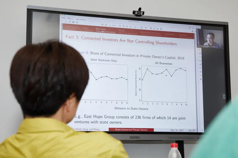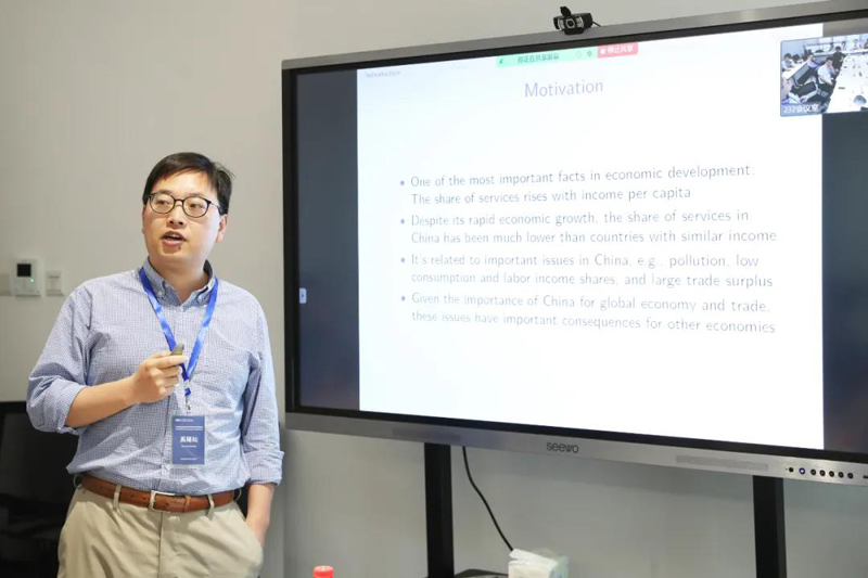 2021年5月29日-30日,上海财经大学高等研究院宏观经济学研讨会在上海财经大学通过线上线下同步的方式举办,北京工商大学副校长、北京大学光华管理学院应用经济系龚六堂教授,复旦大学经济学院副院长、中国社会主义市场经济研究中心副主任、复旦大学产业发展研究中心主任寇宗来教授,美国杜克大学经济系徐熠教授,香港中文大学经济系宋铮教授,复旦大学经济学院胡博助理教授和奚锡灿助理教授,以及上海财经大学高等研究院“中国宏观经济形势分析与预测”课题组4位专家等10位学者,围绕人工智能与货币政策、劳动力、消费、股票等作专题报告。高等研究院副院长林立国,院长助理陈媛媛、杨有智、陈旭东、龚关,“中国宏观经济形势分析与预测”课题组专家,来自国内外的高校、业界以及有关机构等近百人参会交流研讨。研讨会由高等研究院助教授张同斌主持。