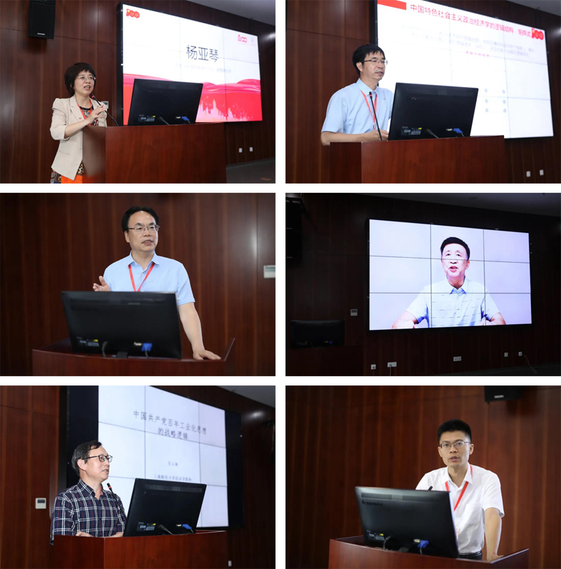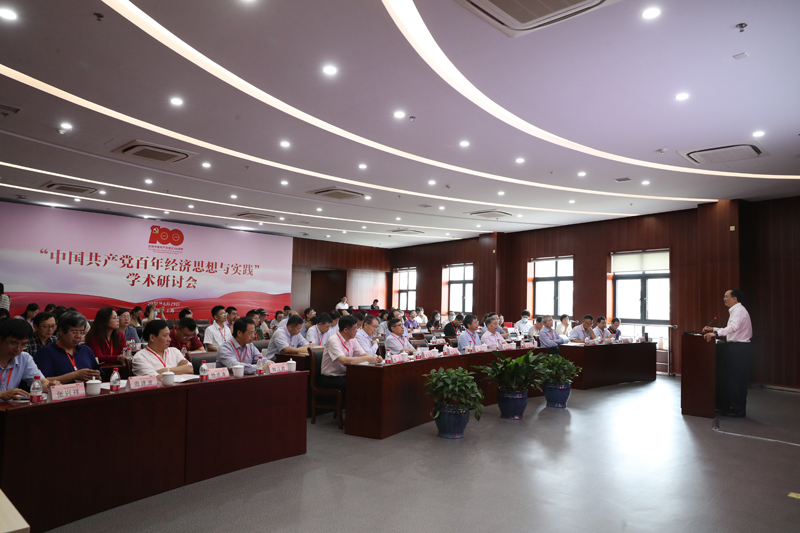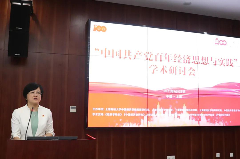 6月29日,上海财经大学“中国共产党百年经济思想与实践”学术研讨会在高等研究院楼举行,研讨会由上海财经大学中国经济思想发展研究院、上海财经大学科研处、上海财经大学经济学院、上海财经大学高等研究院、中国经济思想史学会主办,《经济学动态》《中国经济史研究》《经济思想史学刊》《财经研究》《山东大学学报(哲学社会科学版)》《中国经济问题》等期刊提供学术支持。本次研讨会旨在从学术上更好地回顾总结中国共产党百年来的丰富经济思想与实践,会议为期一天。29日上午研讨会正式开幕,上海财经大学党委书记许涛、中国经济思想发展研究院院长程霖先后致辞。开幕式由经济学院党委书记、中国经济思想发展研究院副院长王昉主持,来自北京大学、复旦大学、南京大学、武汉大学、厦门大学、山东大学、北京师范大学、中南财经政法大学、中国社会科学院、上海社会科学院等高校和科研机构的专家学者,上海财经大学党委常委、宣传部部长章益国,科研处处长靳玉英,人文学院党委书记范宝舟,党办、校办副主任王峰,党校副校长、党委组织部副部长曹东勃,档案馆副馆长高冰冰,经济学院常务副院长夏纪军,高等研究院副院长林立国,经济学院、高等研究院师生及媒体记者近100人出席开幕式。