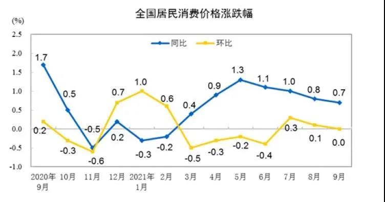 今年第三季度我国CPI同比增速降到“1”以下,消费价格整体相对平稳。核心CPI同比增速在2021年1月触底后反弹,第三季度重新回到“1”以上。7、8、9月扣除食品和能源的核心CPI分别为1.3%、1.2%、1.2%,平均同比增速为1.2%,明显高于2021年上半年0.4%的平均增速。由于当前猪肉价格已接近2013年以来最低价,对养猪积极性产生一定负面影响,课题组预计2021年第四季度猪肉价格将基本稳定,2022年同比增速将显著上升。
