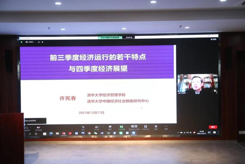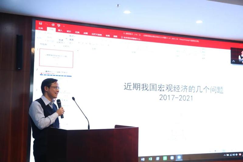 田国强教授、黄晓东教授就嘉宾提到的研究方面的建议分别进行回应。许宪春、盛松成、钟宁桦分别就宏观经济发展形势作主旨演讲。许宪春主旨演讲主题为《2021年我国前三季度经济运行的若干特点与四季度经济展望》。他指出,前三季度经济运行呈现如下特点:生产角度,GDP同比增速逐季明显回落,两年平均增速相对稳定;第二产业增加值增速受制造业、建筑业增加值增速回落影响在第三季度明显下滑;第三产业对经济增长贡献突出。需求角度,居民消费支出增速还没有恢复到疫情前的水平,政府消费支出低于疫情前的水平;净出口需求在前三季度表现最好;投资需求增长乏力。收入角度,全国居民可支配收入增速还没有恢复到疫情前的水平;工业企业利润增速比较高,但两极分化比较突出,上游行业利润成倍增长,下游行业利润增速低或下降,对下游中小企业的影响尤其明显;全国一般公共预算收入保持较快增长。新经济新动能角度,信息传输、软件和信息技术服务业增加值保持快速增长;网上零售额也保持快速增长,对消费的拉动作用持续显现;新经济新动能表现比较好。价格角度,居民消费价格温和上涨,生产领域价格涨幅明显扩大;CPI和PPI“剪刀差”继续扩大,达到有历史记录以来最高值;国际大宗商品价格保持高位促使PPI持续上涨,而PPI对CPI的传导作用并不明显。