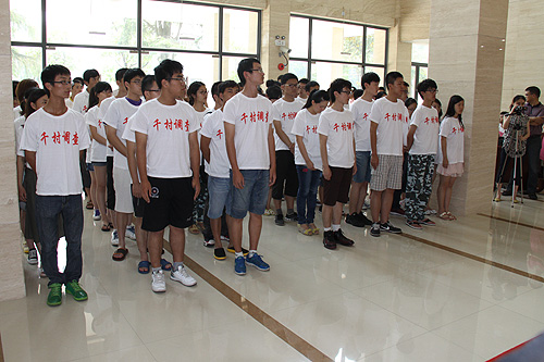 2013年7月10日,上海财经大学千村调查第六期出征仪式于学生中心大厅举行,校党委副书记刘永章、校长助理蒋传海、相关职能部门负责人及第六期专家组成员出席了千村调查出征仪式,各学院(系、所)学生工作书记和学生代表共计100余人参加了出征仪式。
