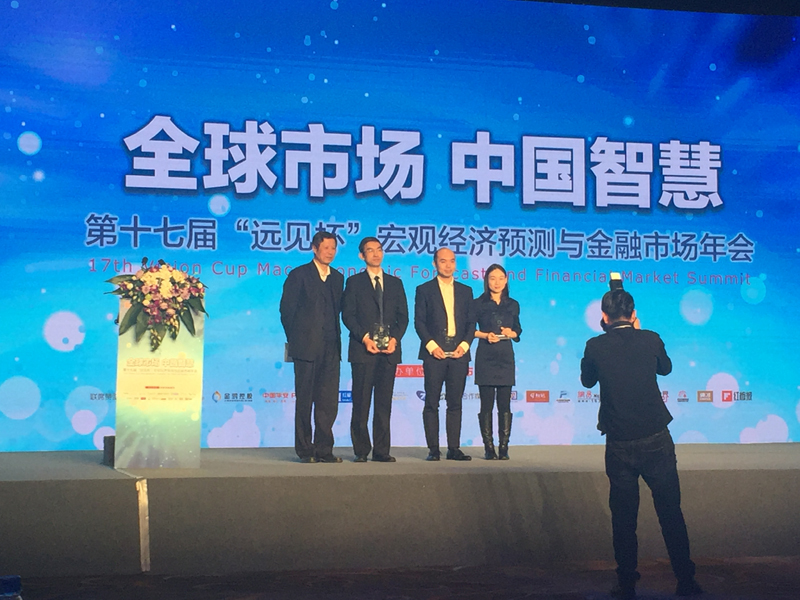 “远见杯”中国宏观经济预测由《证券市场周刊》在2000年发起,经过十七年发展,“远见杯”见证了中国资本市场和金融机构的成长、壮大,促进了宏观经济研究及研究成果的市场转化。据悉,此次参与预测评选的包括国内著名高校、券商、内外资银行、基金、保险、私募等众多机构,主办方根据预测数据事后计算偏离大小为评奖准则,偏离最小者获得“第一名”殊荣。