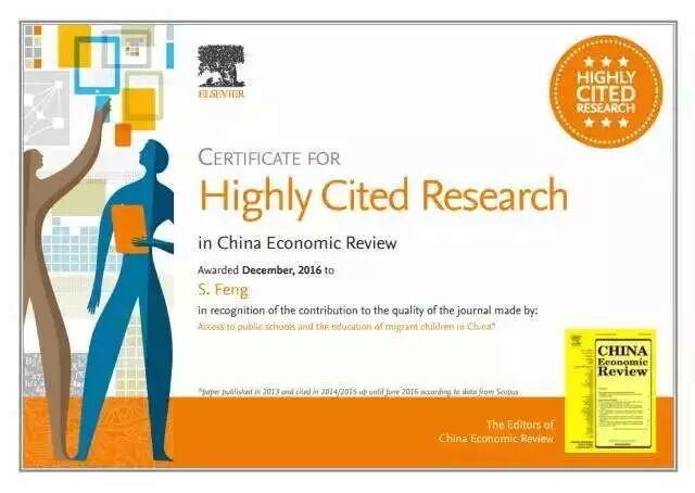 近日,我院陈媛媛副教授2013年发表于China Economic Review上的合作论文(合作者:Shuaizhang Feng)“Access to public schools and the education of migrant children in China”被评为China Economic Review 2014-2016高被引论文。